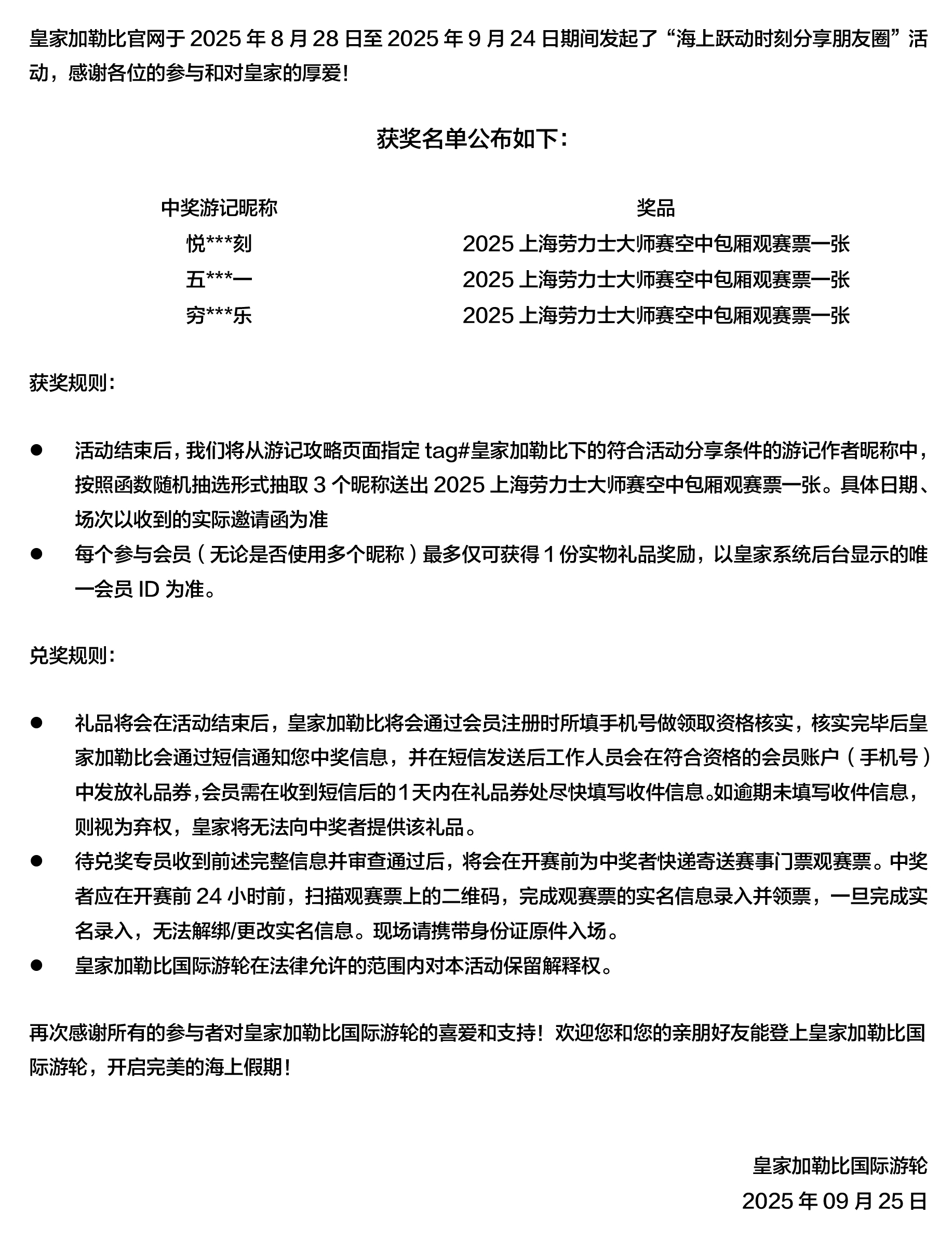上一篇:皇家加勒比2025年双9第二波买赠中奖名单
